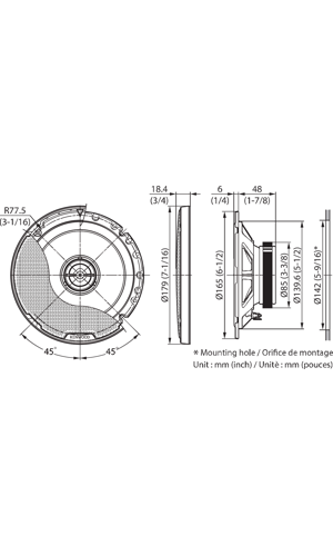 Woofer cone dimensions | 170mm Ø |